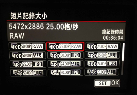 機身支援多種攝錄模式,廠方官網發佈,從最大檔案開始計算,5.5K 60 格 12 Bit Raw 短片為最高規格,而當日的測試樣版機的設置則只有4K 50格的 RAW為浮機攝錄為最大格式,而全高清1920x 1080,每秒25格IPB壓縮為最低規格。相信於購機後的本來一段時間需要更新軟體從而使用5.5K 60格12Bit RAW 的功能。