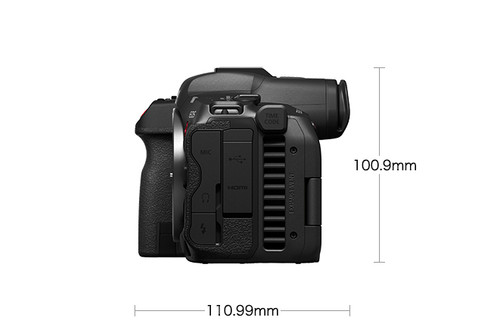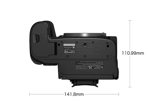 新機體積外觀上下與EOS R5相約,而後方則有如將一部 EOS R5加厚。Viewfinder 則用上了與EOS R5 同規格的0.5-type,5.76-萬像點的 OLED及 0.76x 放大率及120 擦新率的觀景器。